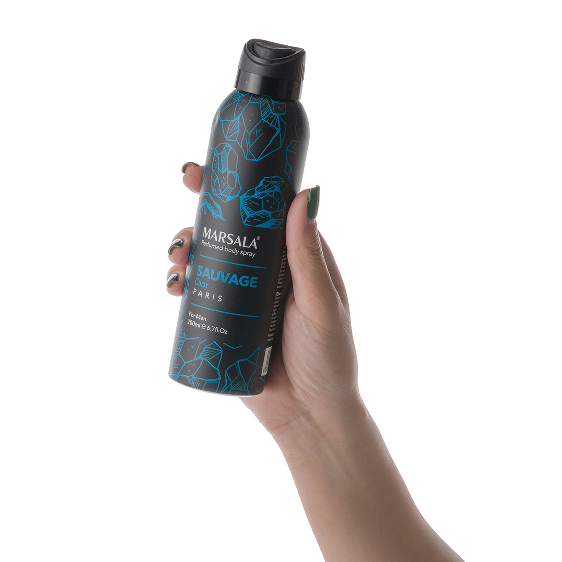اسپری بدن مردانه مارسالا رایحه گرم و تند مدل Dior Sauvage حجم 200 میل