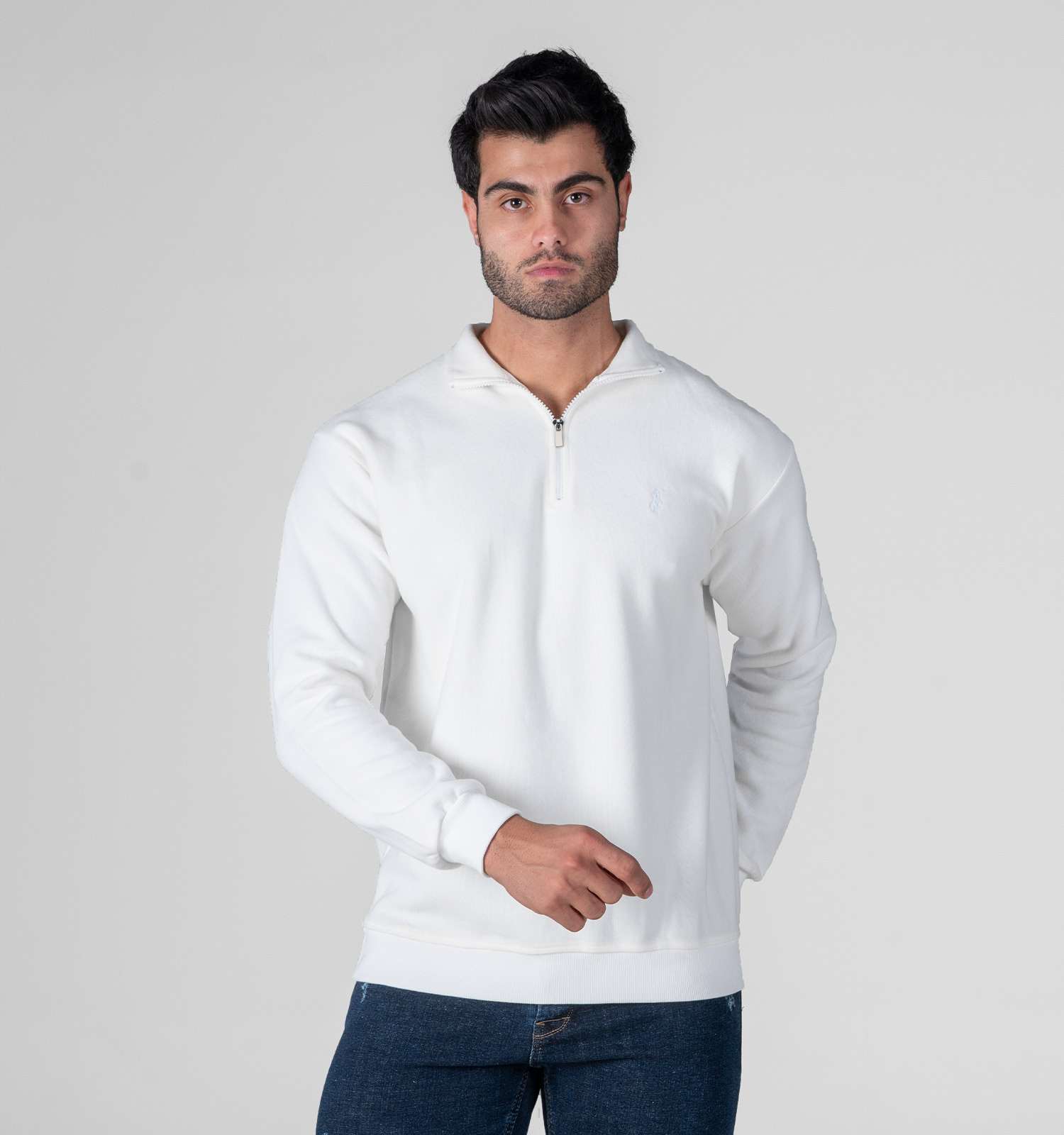 بلوز دورس مردانه یقه دار نیم زیپ سفید ساده: انتخابی شیک و راحت برای استایل روزمره
