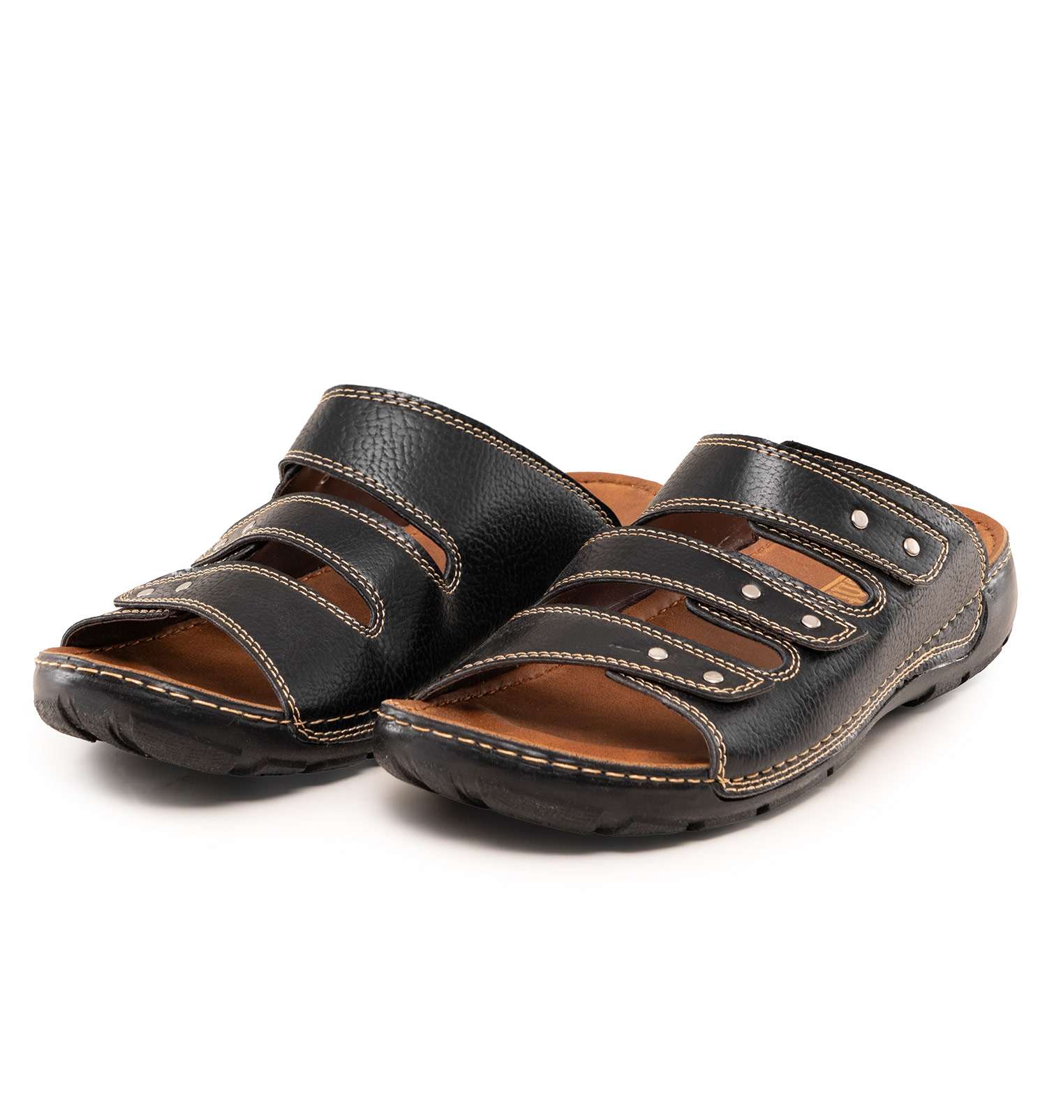 دمپایی صندل مردانه چرم مصنوعی مشکی راحت
