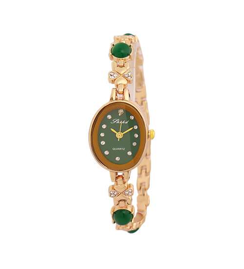 با ساعت مچی زنانه بند طلایی، استایلی بینظیر داشته باشید! (مدل A123 با صفحه سبز)