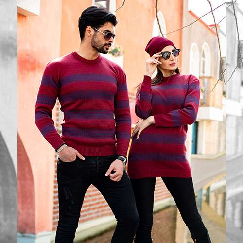 طراحی پلیور و تونیک: این ست شامل یک پلیور برای آقایان و یک تونیک بافت برای بانوان است. طراحی این دو لباس به گونهای است که در عین هماهنگی، تفاوتهای ظریفی دارند که جذابیت خاصی به استایل شما میبخشد.