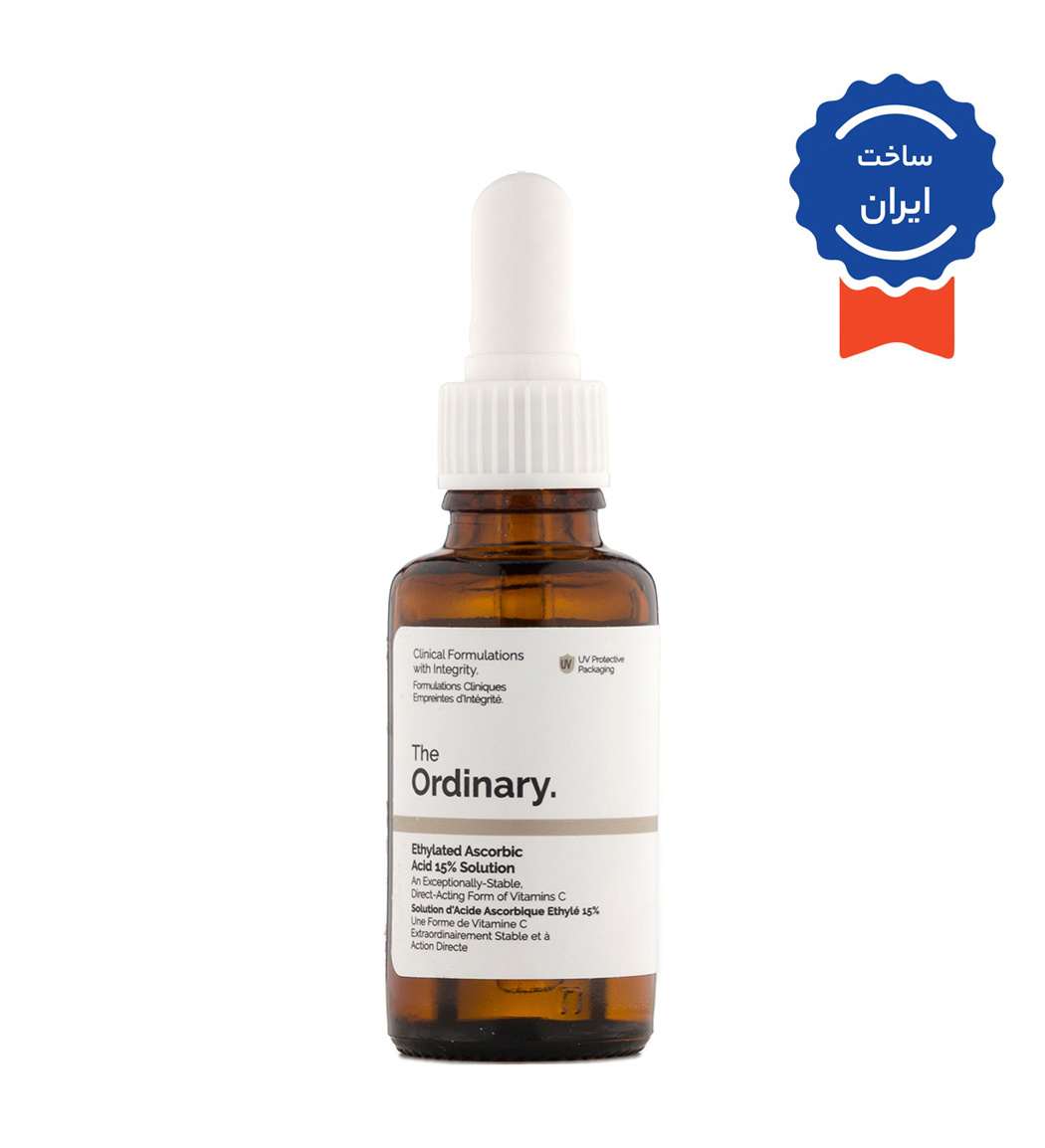 اتیلد آسکوربیک اسید 15%: این فرم از ویتامین C، پایدارتر و موثرتر از سایر فرمهای ویتامین C هست و به راحتی جذب پوست میشه. اتیلد آسکوربیک اسید، خاصیت روشن کنندگی، آنتیاکسیدانی و ضد پیری داره.