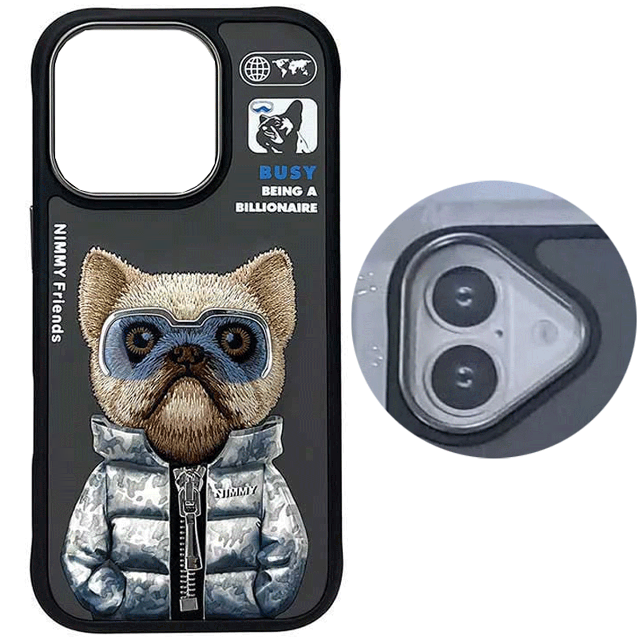 چه چیزی باعث میشود قاب نیمی، اینقدر خاص باشد؟ پاسخ ساده است: استفاده از مواد اولیه باکیفیت و طراحی هنرمندانه. این قاب از روکش گلدوزی شده و TPU ساخته شده است که نهتنها ظاهری زیبا و جذاب به آن میبخشد، بلکه مقاومت بالایی در برابر ضربه، خراش و ساییدگی دارد. زیپ لباس و عینک عروسک روی قاب، واقعی هستند و به آن جلوهای منحصربهفرد میبخشند.