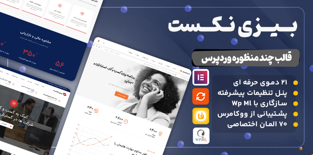 امکانات کلیدی قالب وردپرس بیزی نکست Businext