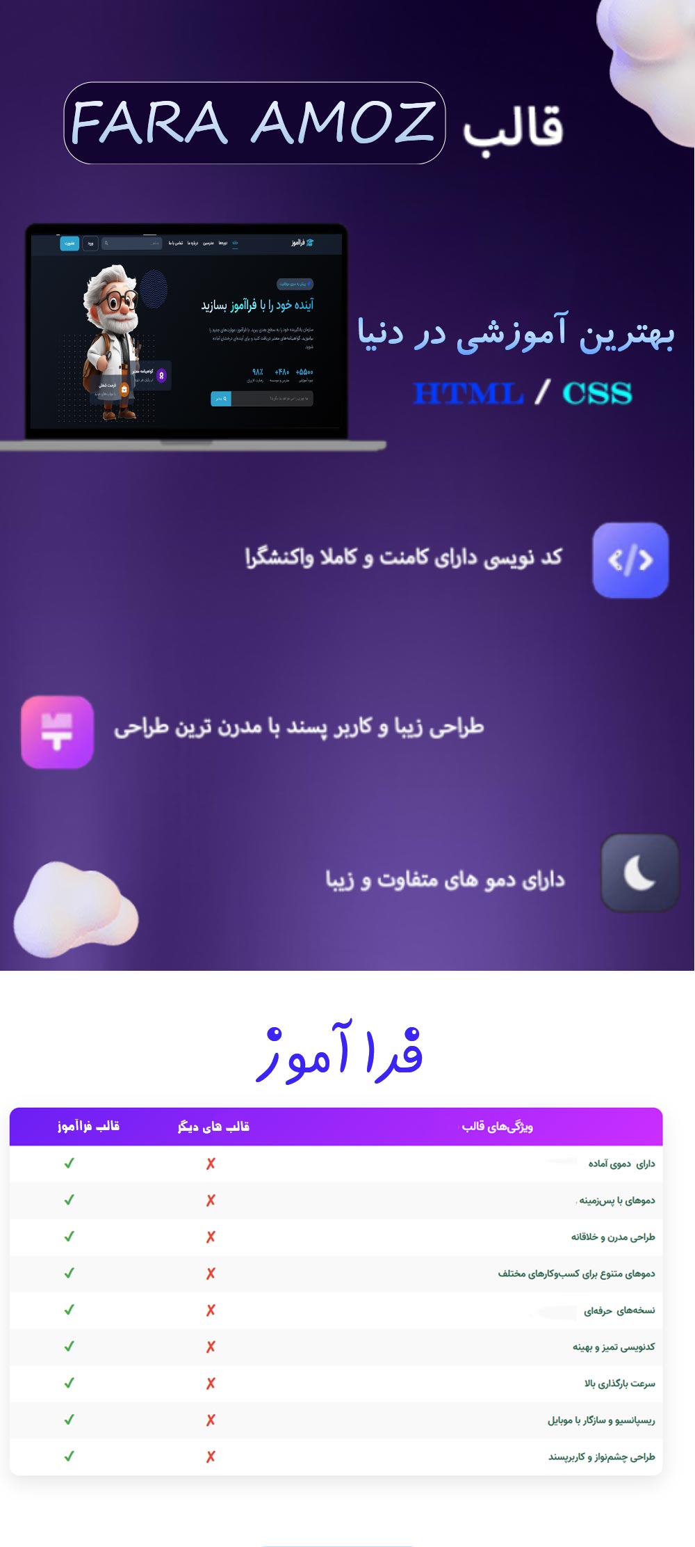 قالب HTML فراآموز: شاهکار طراحی برای دنیای آموزش آنلاین شما 🚀