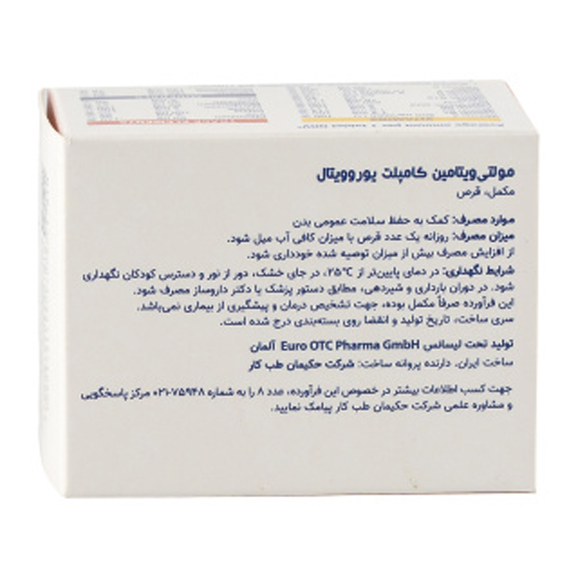 ۹. هر بسته از قرص مولتی ویتامین کامپلیت یوروویتال چند عدد قرص دارد؟