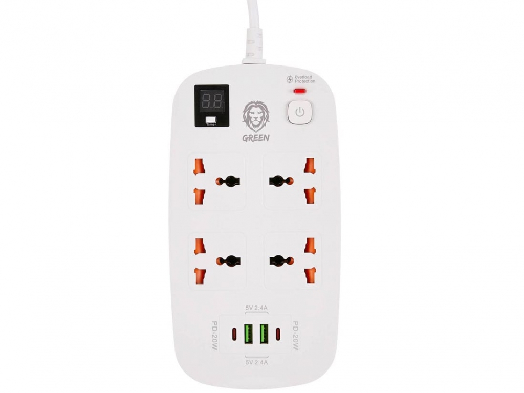 چند راهی هوشمند گرین، نه تنها یه چند راهی معمولیه، بلکه یه مرکز فرماندهی کامل برای برق خونه یا محل کار شماست! 😎 با 4 پریز برق، 2 پورت USB-A و 2 پورت Type-C، می‌تونید 8 تا دستگاه رو همزمان به برق وصل کنید. دیگه لازم نیست برای شارژ گوشیتون، لپ‌تاپتون رو از برق بکشید! 👌