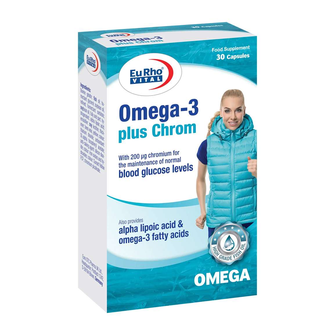 کپسول امگا 3 پلاس کروم یوروویتال، در بسته‌بندی 30 عددی عرضه می‌شود و به صورت کپسول ژلاتینی تولید شده است. ماده مؤثر اصلی این محصول، اسیدهای چرب امگا-3 است که در کنار کروم، ترکیبی قدرتمند برای سلامتی شما ایجاد می‌کنند. این محصول با جعبه‌ای زیبا و کاربردی بسته‌بندی شده و از برند یوروویتال آلمان با افتخار در ایران تولید می‌گردد.