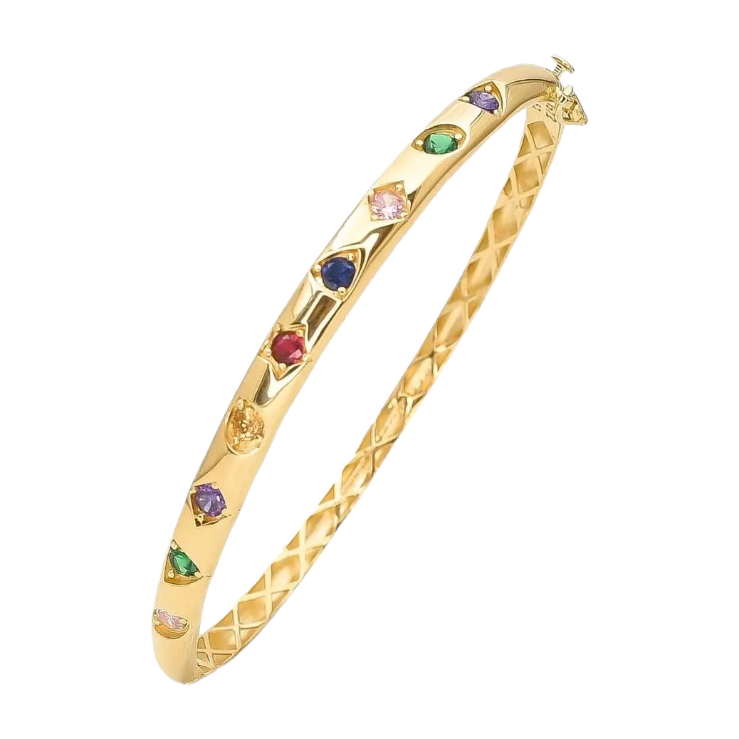 این بنگل دستبندی از طلای 18 عیار ساخته شده است که حدود 75% آن طلای خالص است و تعادل ایدهآلی بین زیبایی و دوام را ارائه میدهد.