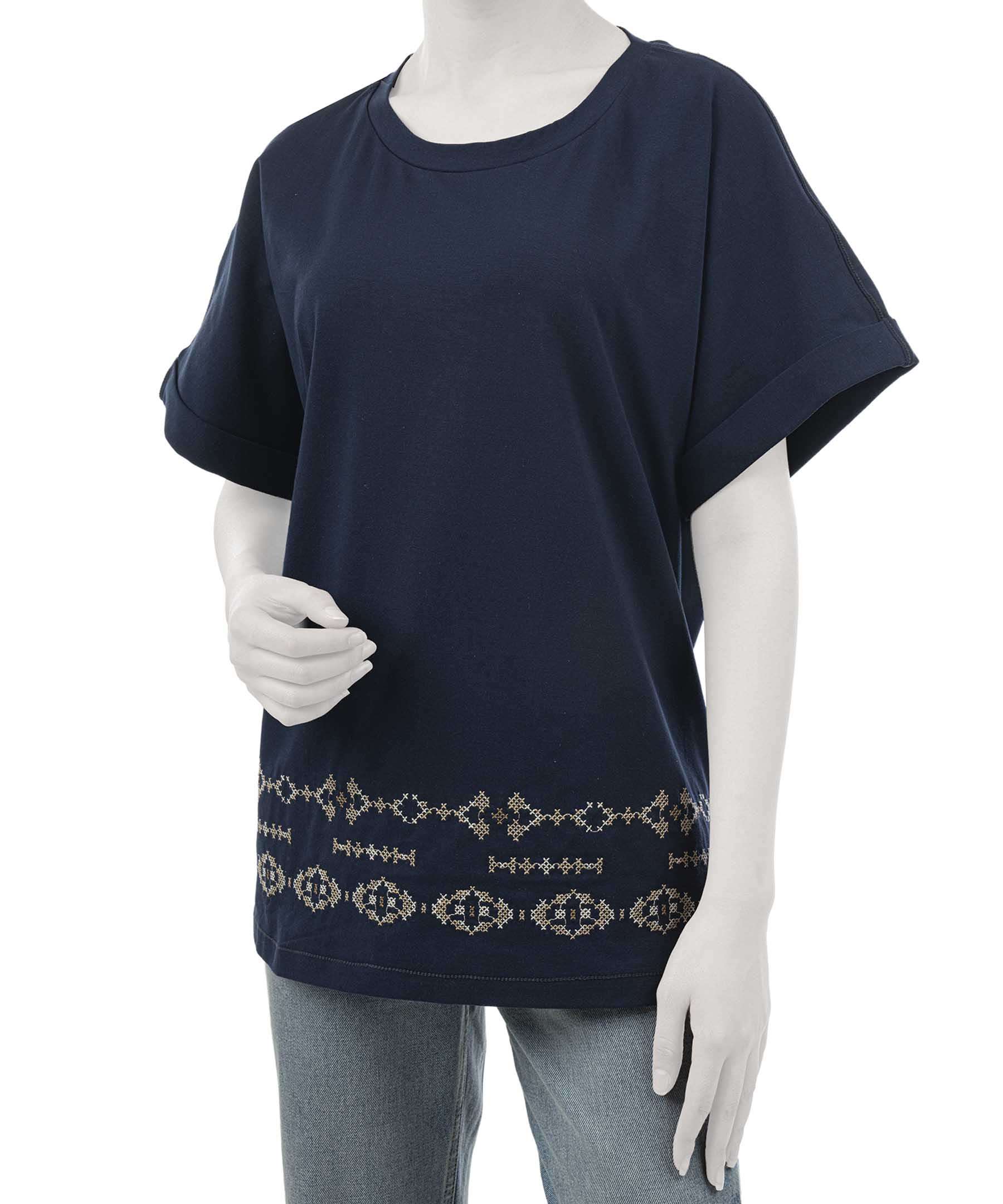 طرح گلدوزی شده پایین لباس: این طرح ظریف و زیبا، تیشرت رو از سادگی درمیاره و یه جلوه خاص بهش میده. انگار یه تیکه هنر پوشیدی! ✨