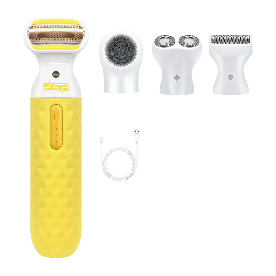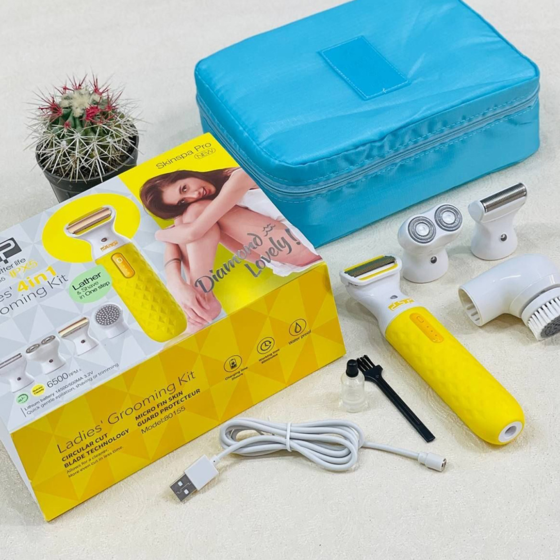 این ست شامل 4 سری کاربردی است: سری موهای صورت، سری پاها، براش پاکسازی صورت (فیس واش) و سری تریمر بیکینی.