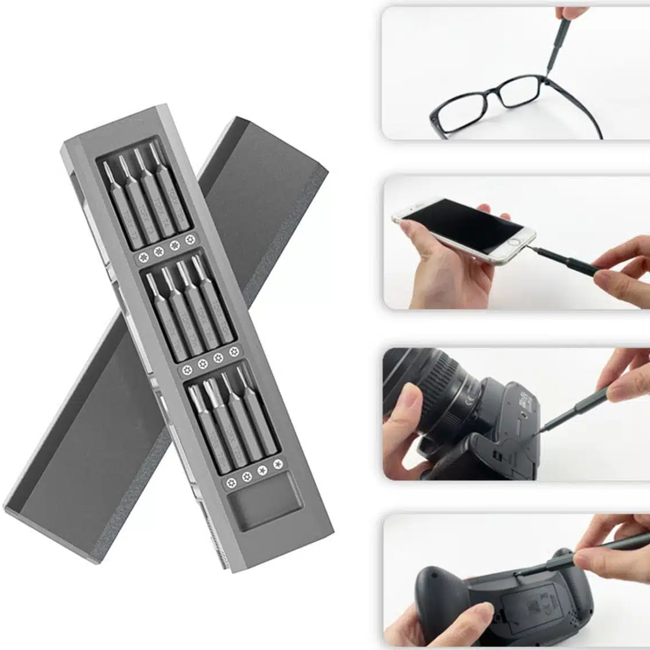 تمامی سریها و ابزارها در یک جعبه ABS شیک و کشویی قرار دارند که طراحی فشرده و کمجا دارد. با فشار یک دکمه، بخش داخلی جعبه بیرون میآید و دسترسی سریع به سریها ممکن میشود. ابعاد جعبه 36×36×150 میلیمتر و وزن 295 گرم، حمل آن را راحت و بدون دردسر میکند. این طراحی باعث میشود مجموعه همیشه مرتب و آماده استفاده باشد. با این ویژگی، تجربه حرفهای و منظم تعمیرات در هر مکانی ممکن میشود.