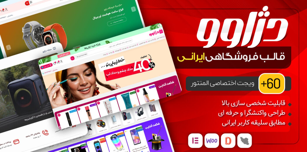 قالب دژاوو، با بهرهگیری از المنتور پرو، امکانات فوقالعادهای را برای شما فراهم میکند. این قالب با داشتن 6 دمو آماده و جذاب برای فروشگاههای مختلف (از جمله موبایل، لوازم دیجیتال، لوازم آرایشی، لباس، عطر و ادکلن و ساعت) به شما این امکان را میدهد که به سرعت یک فروشگاه آنلاین حرفهای راهاندازی کنید. 61 ویجت المنتور با تنظیمات نامحدود، قدرت و انعطافپذیری بینظیری را در طراحی و سفارشیسازی سایتتان در اختیارتان قرار میدهد. با دژاوو، دیگر نیازی به هیچ افزونه اضافی نخواهید داشت و تمام ابزارهای مورد نیاز برای داشتن یک فروشگاه آنلاین پیشرفته در دسترس شما خواهد بود.