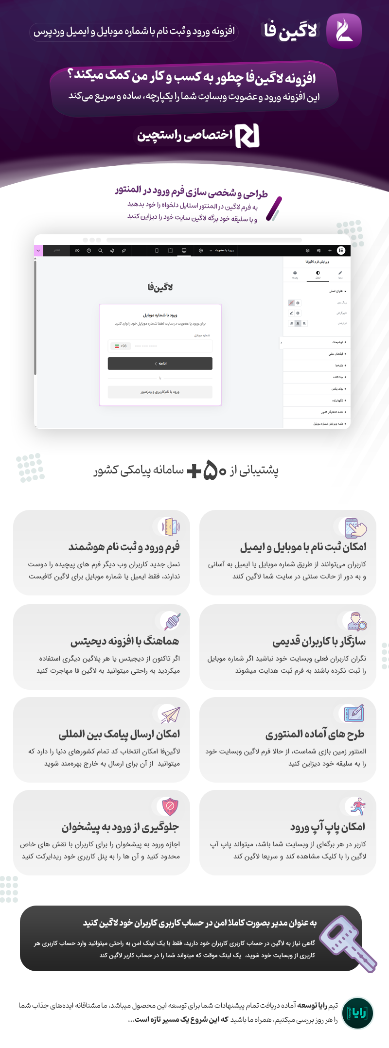 لاگین فا مرزها را از بین میبرد! این افزونه امکان ارسال پیامک بینالمللی را برای شما فراهم میکند و تقریباً از تمام کشورهای جهان پشتیبانی میکند. علاوه بر این، قابلیت ارسال پیامک بر اساس پترن، امکان ارسال پیامهای هدفمند و سفارشی را به شما میدهد.