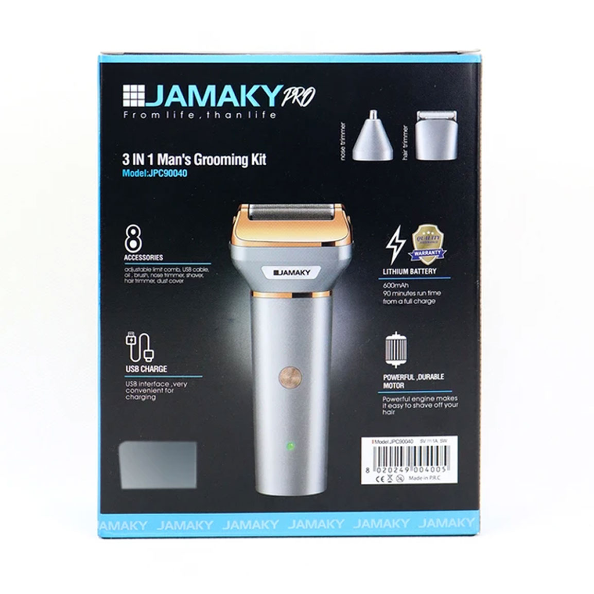 بستهبندی ماشین اصلاح جاماکی JPC90040 شامل تمام چیزهایی است که شما برای نگهداری و استفاده بهینه از دستگاه نیاز دارید. وجود روغن مخصوص، برس تمیزکننده، کابل شارژ USB، محافظ تیغه و سری یدک، نشان از توجه سازنده به جزئیات و راحتی کاربر است. 💯