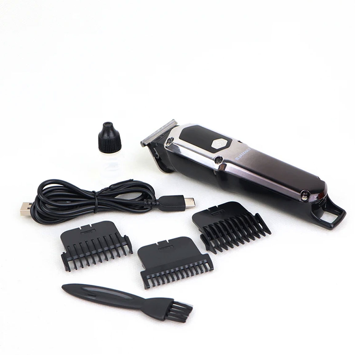علاوه بر شانهها، اقلام همراه دیگری نیز در بسته بندی این تریمر وجود دارد تا نگهداری و استفاده از آن را برای شما آسانتر کند. روغن مخصوص تیغهها، برای روانسازی و حفظ عملکرد بهینه دستگاه، و برس تمیزکننده، برای زدودن موهای باقیمانده پس از هر بار استفاده، از جمله این همراهان هستند. کابل شارژ USB نیز، اتصال دستگاه به منابع تغذیه مختلف را فراهم میکند و راحتی شما را در هر مکانی تضمین مینماید. 🔌