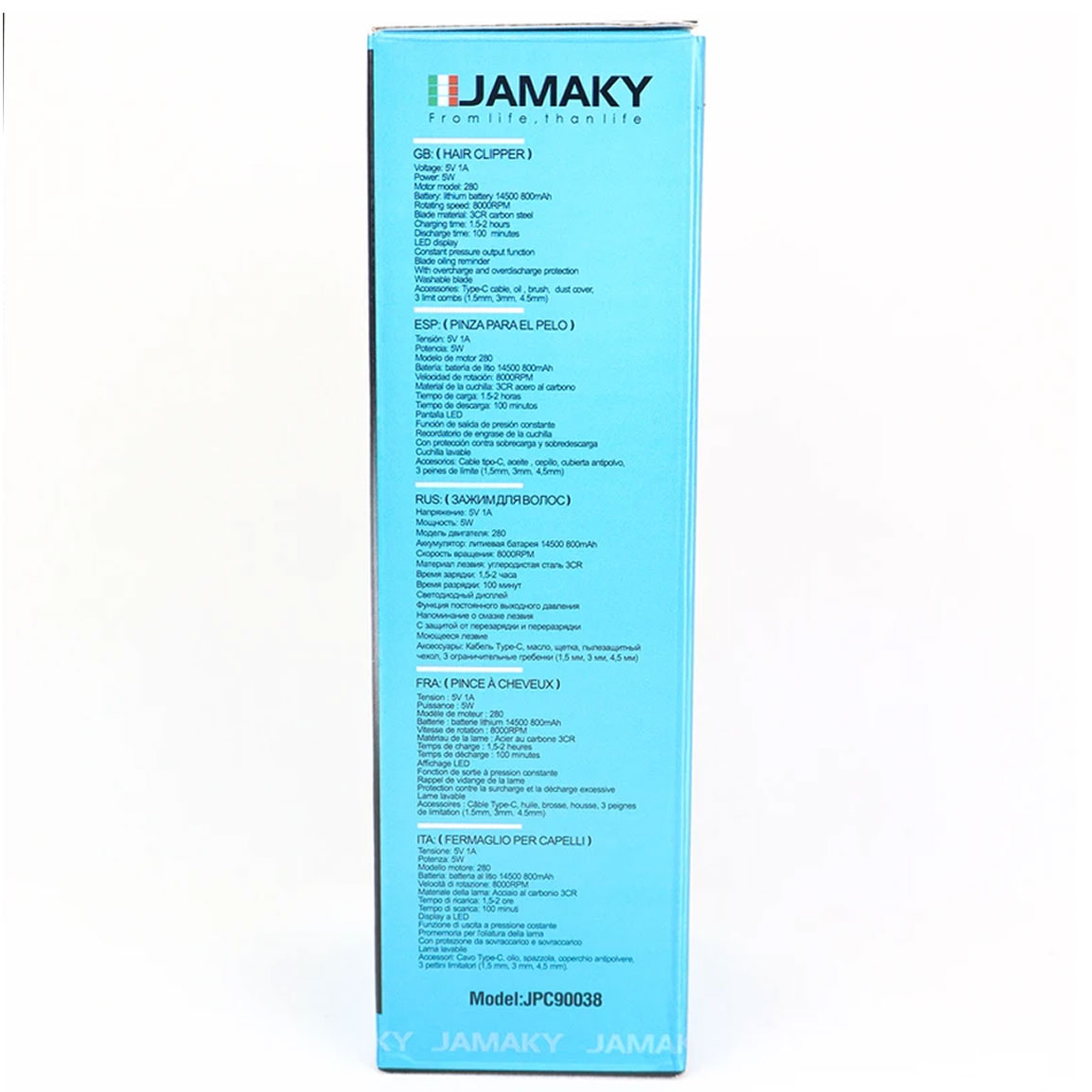 تریمر جاماکی JPC90038، تنها یک دستگاه نیست، بلکه مجموعهای کامل برای ارتقای تجربه اصلاح شماست. این دستگاه با سه سری یا شانه مختلف عرضه میشود که به شما امکان میدهد طول اصلاح مورد نظر خود را به دقت تنظیم کنید. این شانهها در سایزهای 1.5، 3 و 4.5 میلیمتری ارائه شدهاند، تا بتوانید انواع مدلهای مو، ریش و حتی اصلاح بدن را با دقت دلخواهتان اجرا کنید. ✂️
