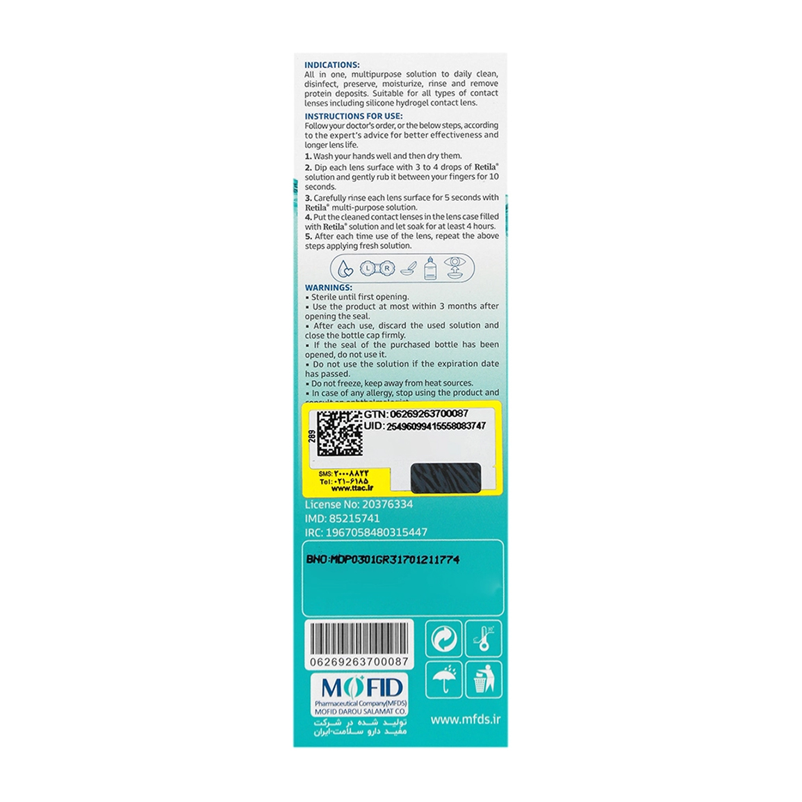 این محلول برای انواع لنزهای تماسی، از جمله لنزهای رنگی، مناسب است.