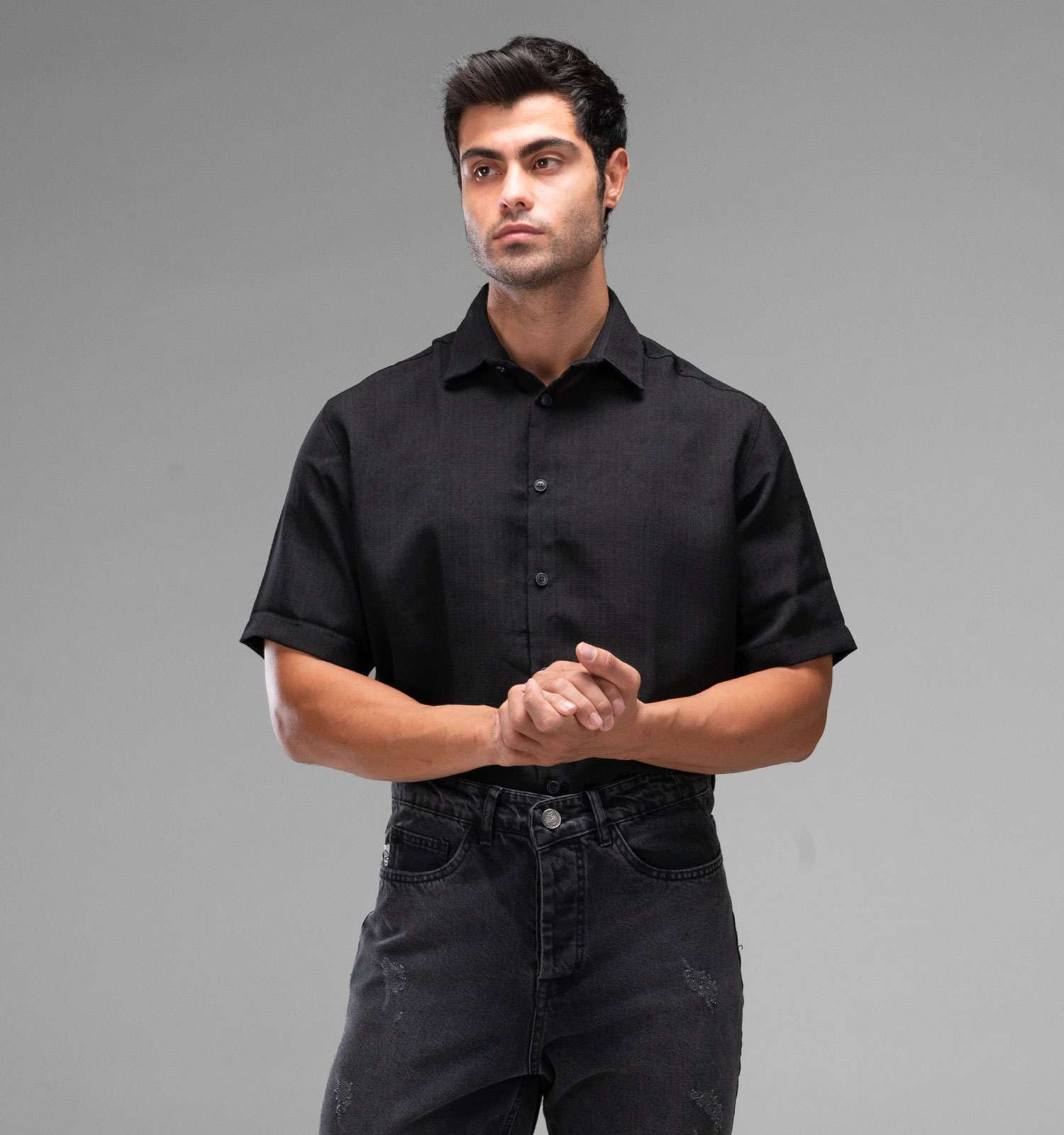 پیراهن لینن مردانه آستین کوتاه مشکی: استایل خنک و شیک برای تابستان ☀️