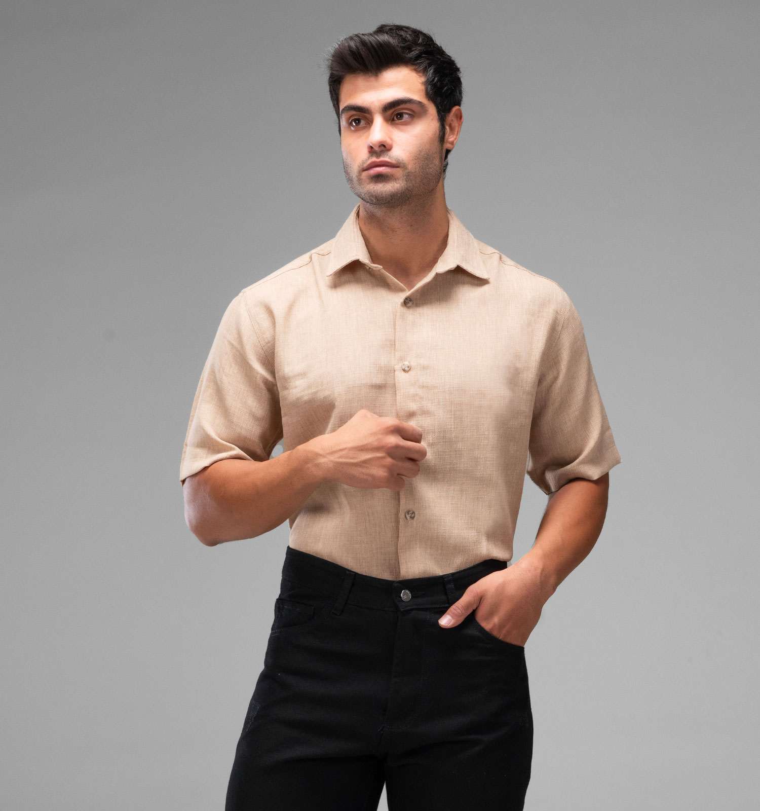 پیراهن لینن مردانه آستین کوتاه کرمی: راحتی و شیکپوشی در تابستان ☀️