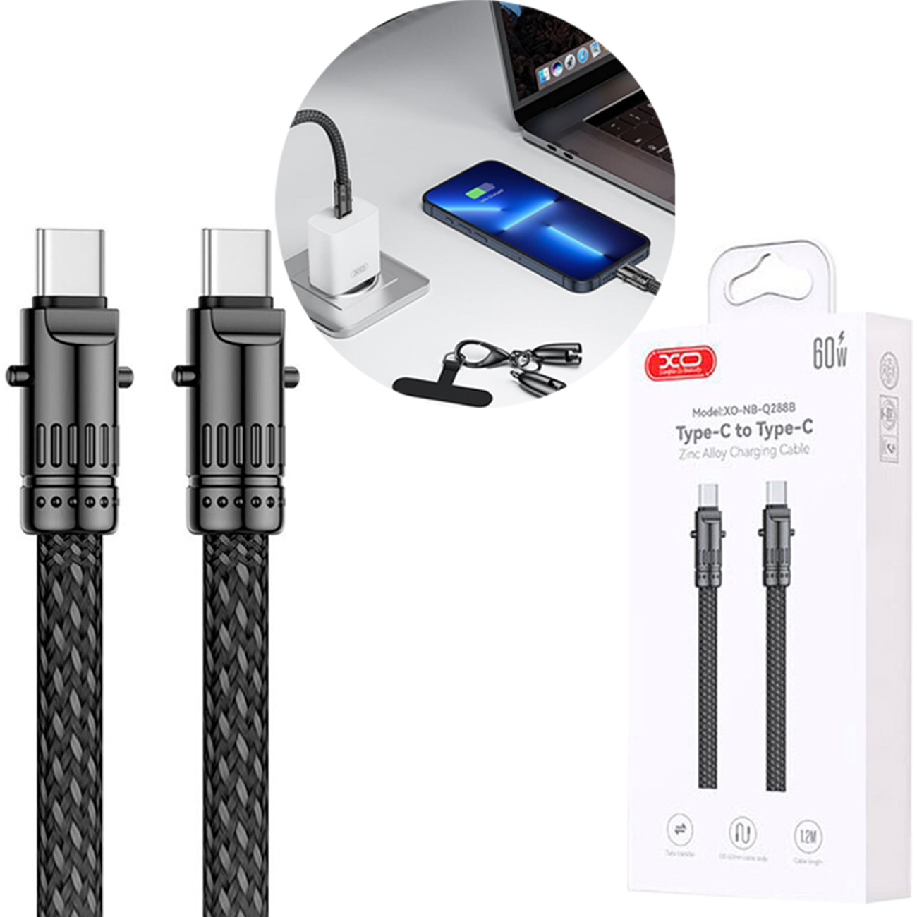 کابل تایپ سی به تایپ سی ایکس او مدل NB-Q288B: غلبه بر چالشهای شارژ با 60 وات قدرت و 1.2 متر انعطاف! 🚀