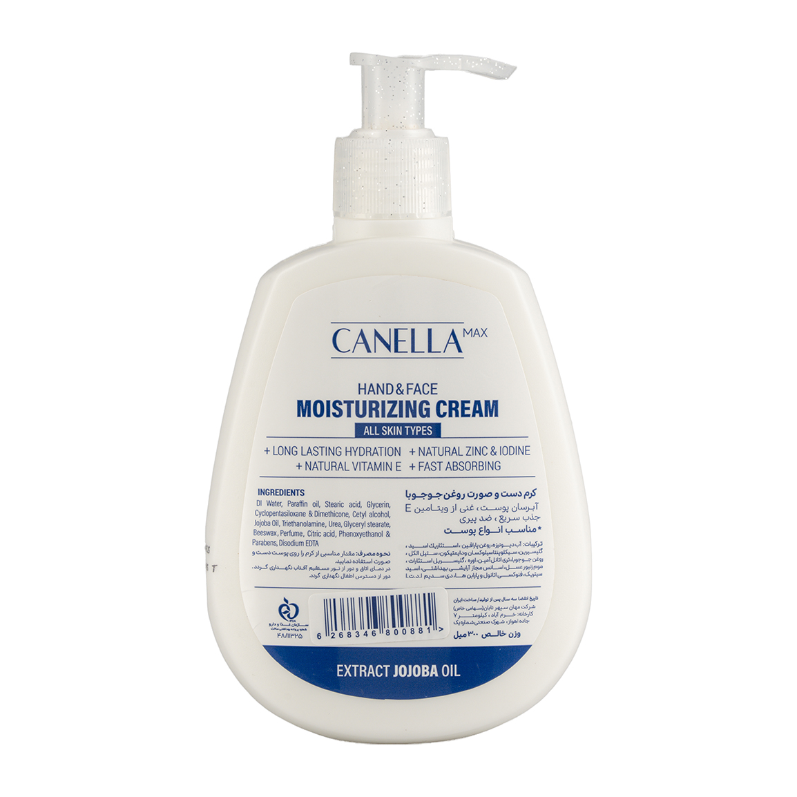 کرم پمپی کنلامکس با حجم ۳۰۰ میلیلیتر، با فرمولاسیون غنی از مواد آبرسان مثل گلیسیرین و عصاره جوجوبا، رطوبت لازم رو به پوست تزریق میکنه و مانع از دست رفتن اون میشه. این یعنی پوستی که همیشه شاداب، نرم و باطراوت به نظر میرسه. دیگه خبری از حس کشیدگی و خشکی آزاردهنده نیست! 😊