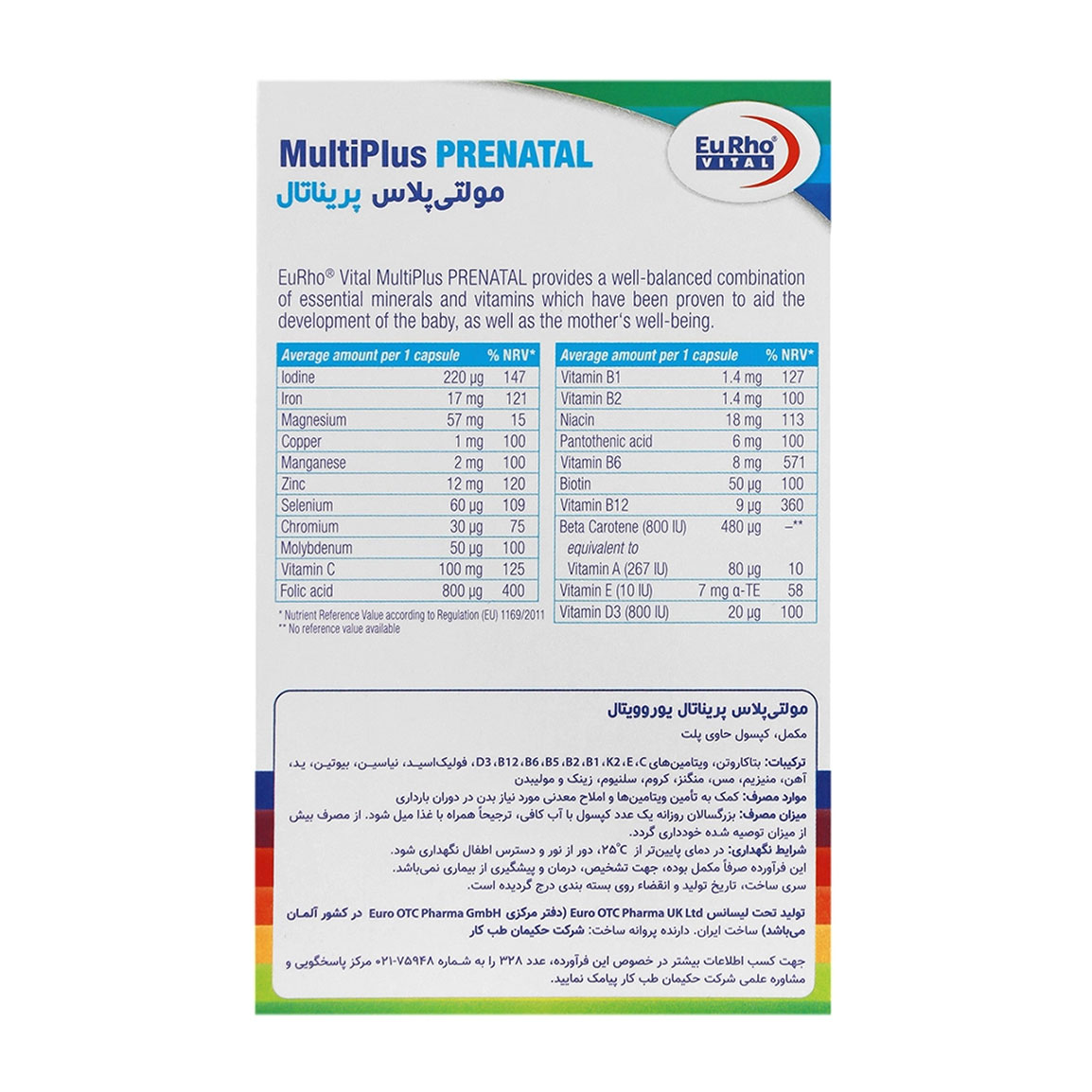 مولتی پریناتال پریناتال به طور خاص با دوزهای متفاوتی از ویتامینها و مواد معدنی فرموله شده است تا نیازهای تغذیهای منحصر به فرد دوران بارداری را برآورده کند، به خصوص مقادیر بالاتر فولات و آهن.