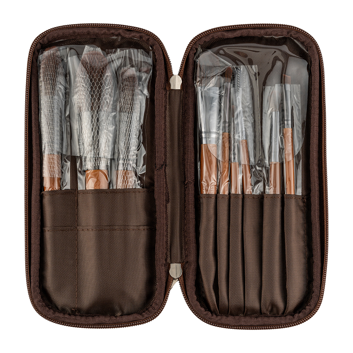 ست برس آرایشی کیف‌دار مدل 09 نه عددی رنگ قهوه ای
