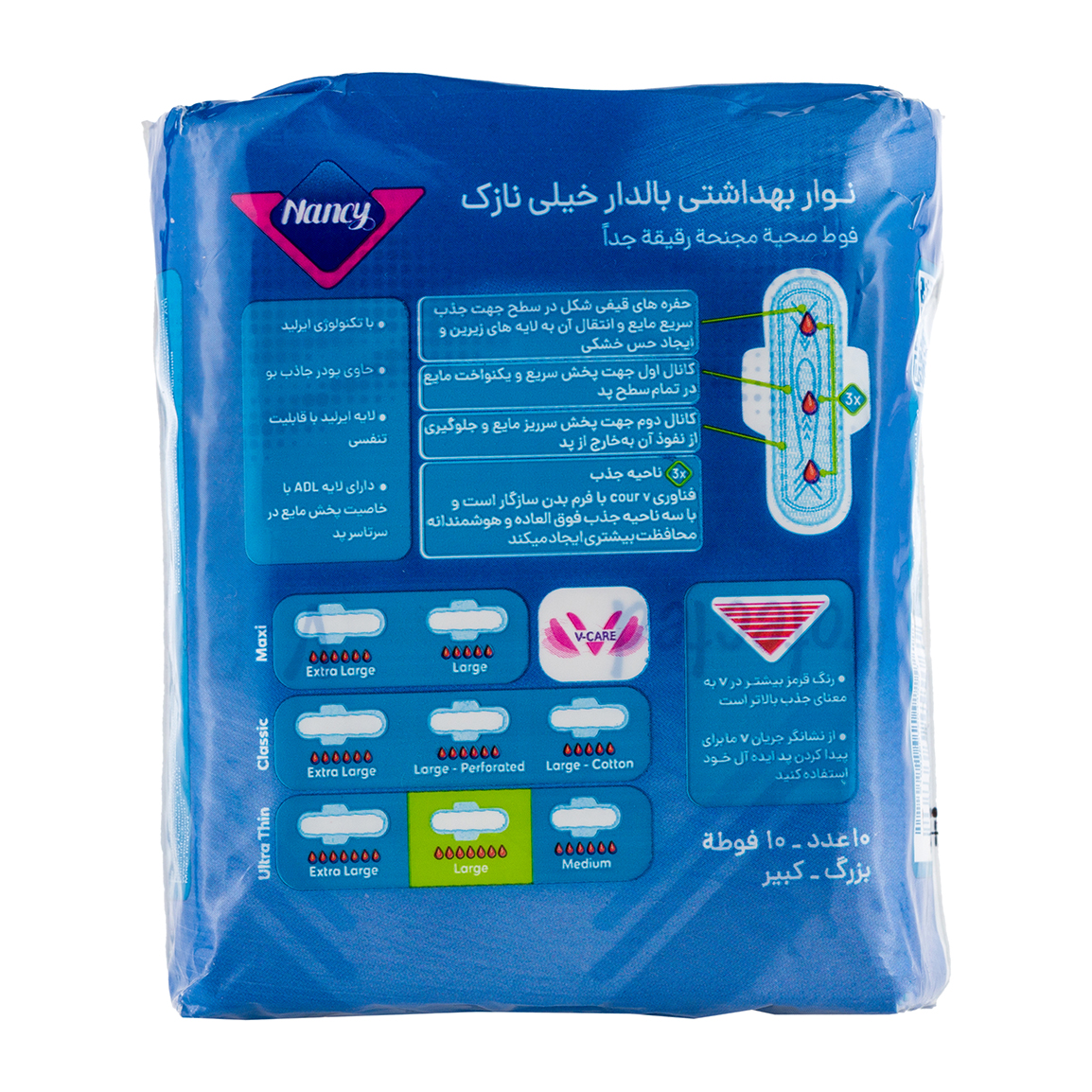 آیا نوار بهداشتی نانسی قدرت جذب بالایی دارد؟ بله، این نوار بهداشتی با جذب زیاد، برای روزهای با خونریزی زیاد مناسب است.